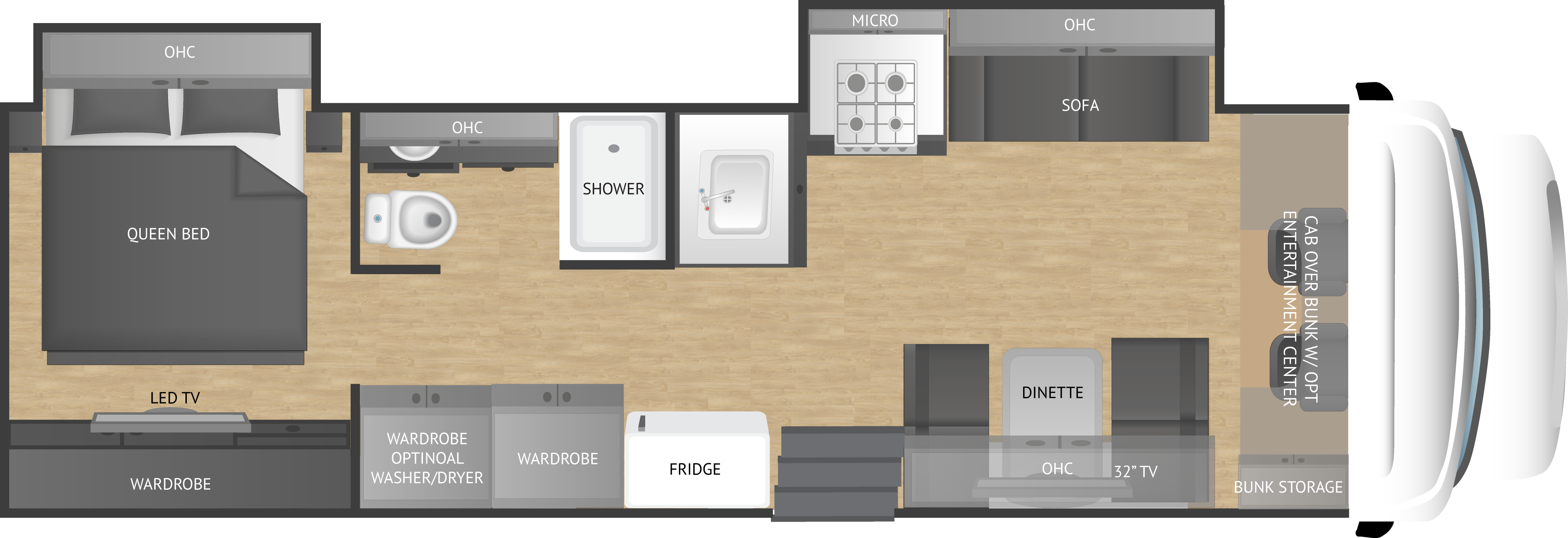 NeXus RV’s Ghost is the finest luxury diesel super C available. NeXus’s flagship Ghost has all the benefits of a diesel pusher, such as luxury interior appointments and top of the line materials, paired with a full featured International air ride chassis with air brakes, exhaust brakes, and 20,000lbs of towing power. NeXus RV best in class “ALL STEEL – COMPOSITE” construction up to 72% stronger construction for safer rides, while using steel in the superstructure, minimizing potential water damage, while maximizing thermal and sound insulation. Ghost Luxury Diesel Super C buyers know what they want and line up for Ghost when quality, safety, carrying capacity, and peace of mind is a key to buying decision.